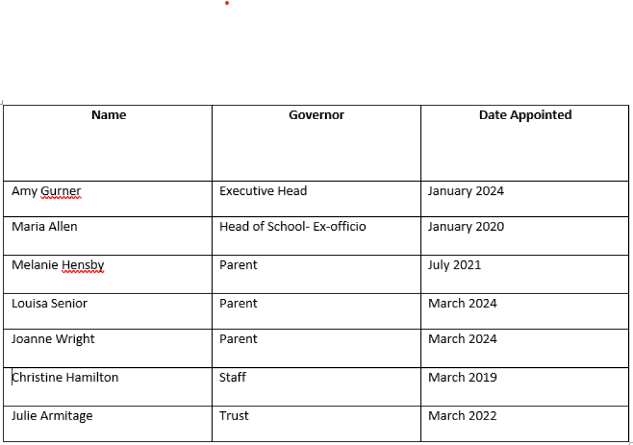 Each DSAT academy also has a Local School Board, which acts in an advisory capacity. Our school board members are listed below. It meets three times yearly to consider and scrutinise how we deliver all aspects of education for our pupils and parents. Members of the school board may also support the school in recruitment and other local activities that help ensure the school reflects the community's needs and retains its unique identity. More details can be found here: DSAT Local Governance Guide