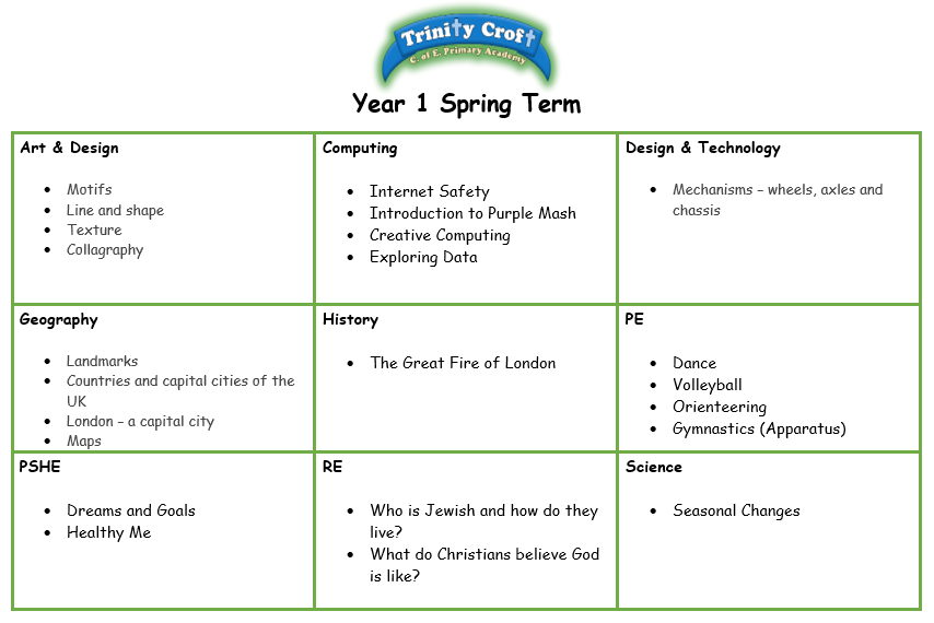 Happy New Year! We have lots of exciting learning planned for the children in Year 1 this term and look forward to seeing all of the fantastic work that they do.